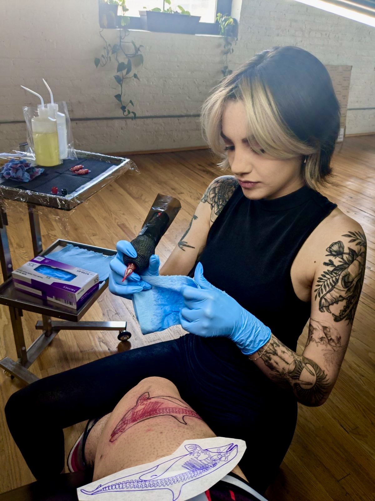 Hi, I’m Erica, a Chicago-based tattoo artist specializing in dark, nature-inspired, and anatomical tattoos. I am currently tattooing at Evergreen Studios in Chicago.